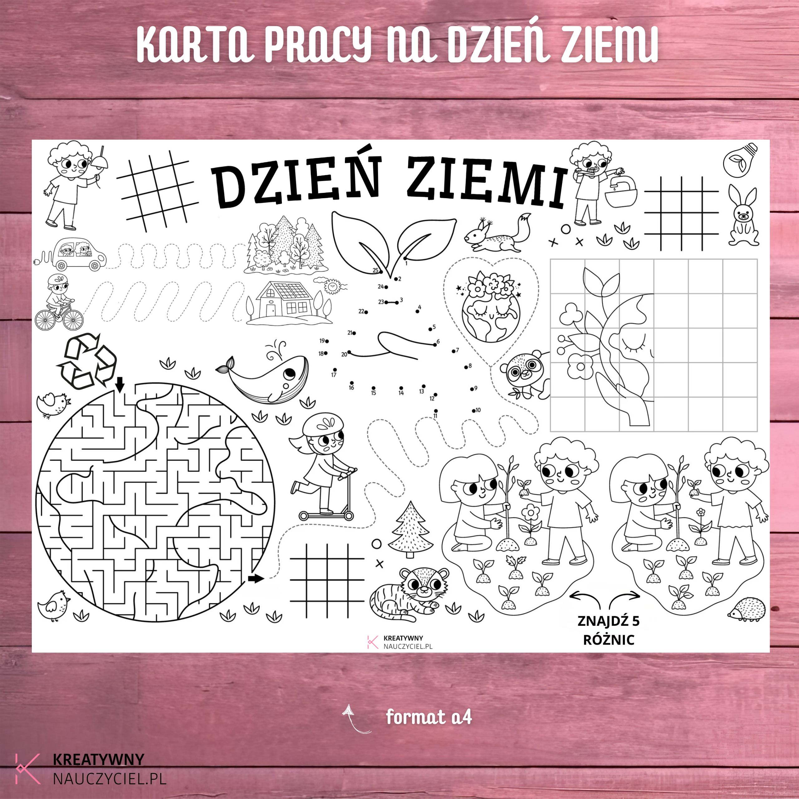 ✨ „Dzień Ziemi – karta pracy A4” to kompaktowa i atrakcyjna pomoc dydaktyczna, która łączy naukę z zabawą, inspirując dzieci do dbania o naszą planetę. 🌎💚