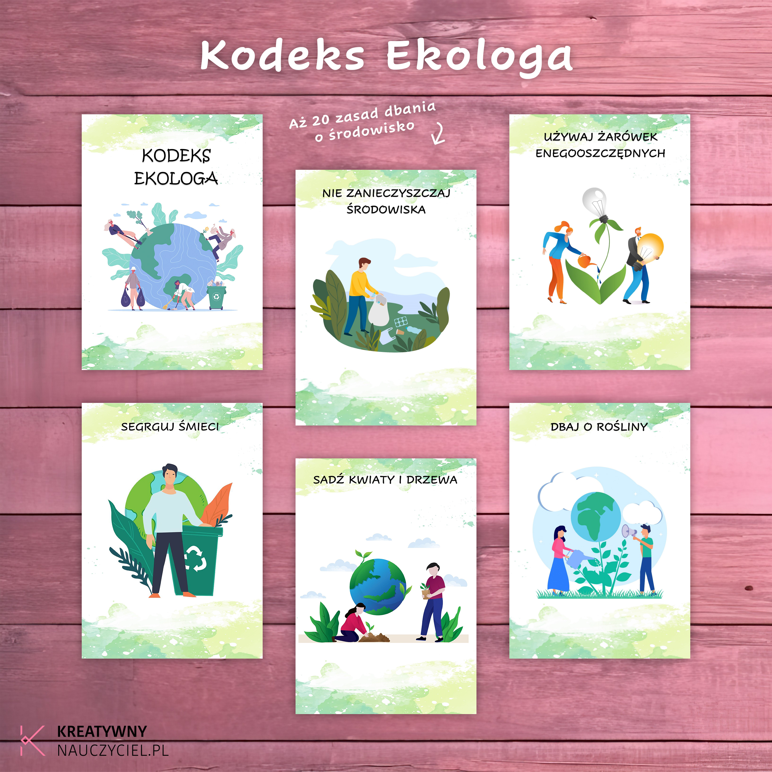 Zestaw zawiera 20 zasad dbania o środowisko. Idealnie sprawdzi się podczas zajęć z okazji Dnia Ziemi, jak i również jako utrwalenie wiadomości zamieszczonych na gazetce szkolnej.