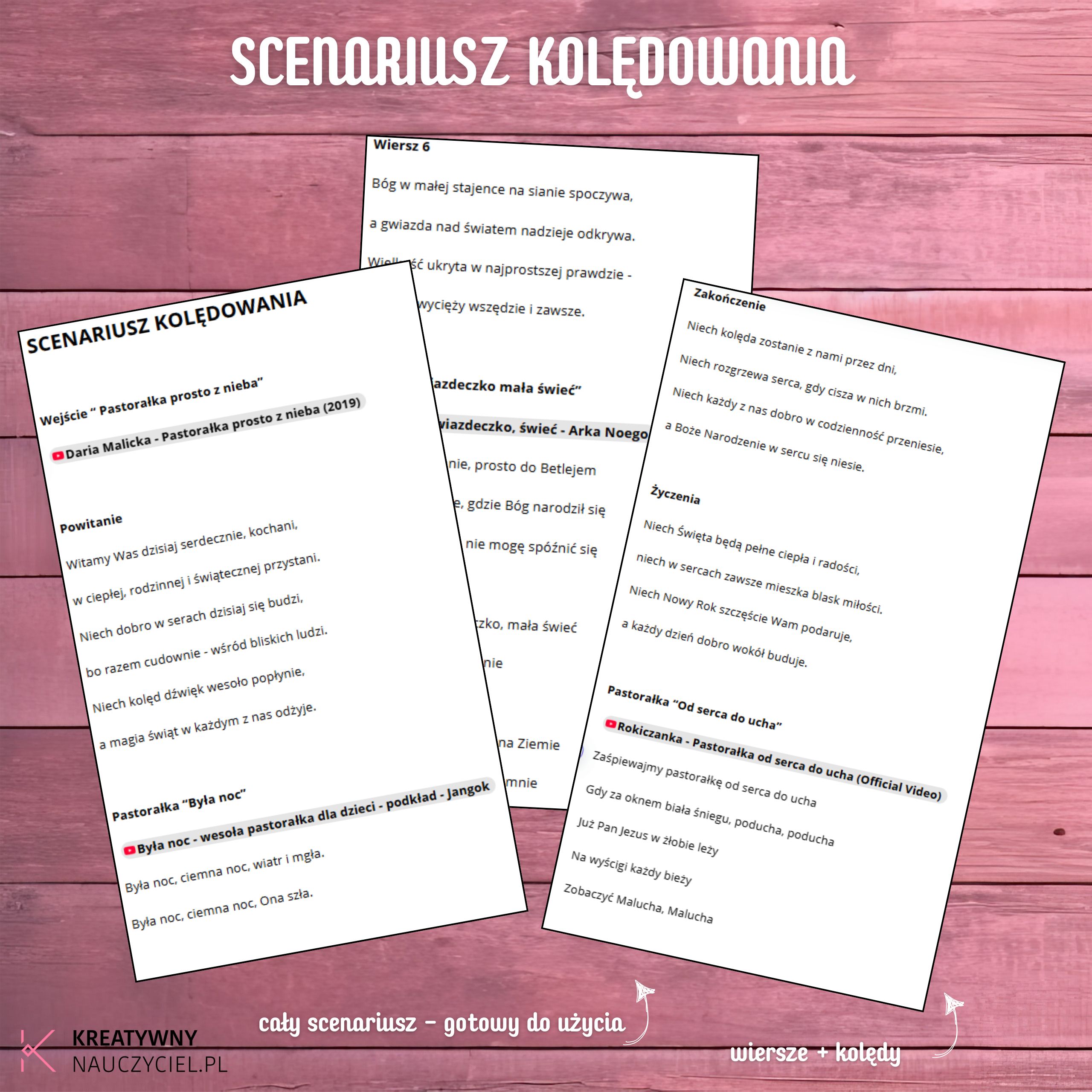 „Scenariusz Kolędowania” to gotowy do użycia program artystyczny, idealny na występ świąteczny, koncert kolęd, spotkanie wigilijne lub klasowe jasełka. Zawiera kompletne teksty powitań, życzeń, wierszy i propozycje kolęd z kolejnością wykonania. Wystarczy wydrukować i poprowadzić występ — bez stresu, bez przygotowywania od zera. 🌟
