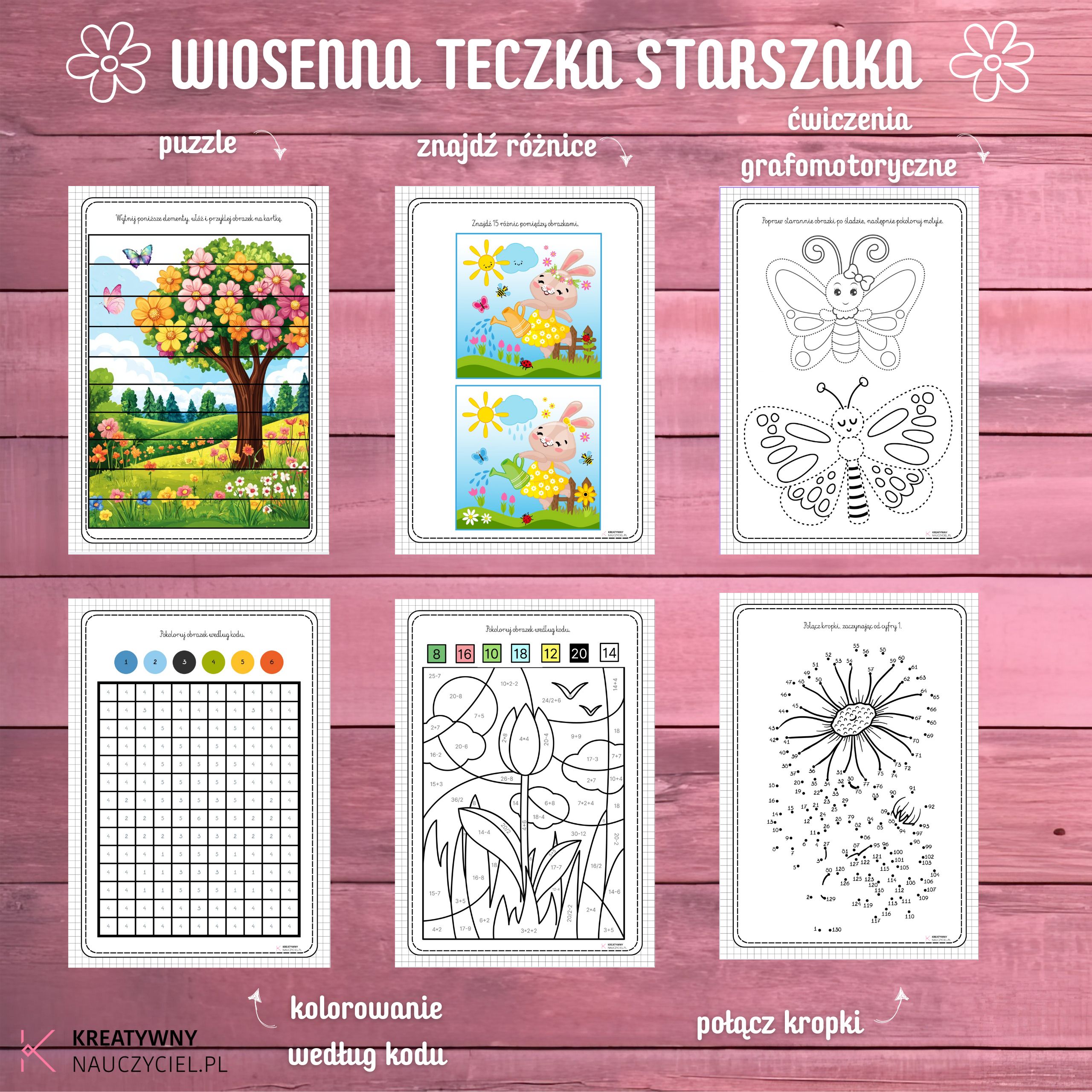 Szukasz wartościowych i angażujących materiałów dla dziecka? “Wiosenna Teczka Starszaka” to aż 100 stron pełnych ćwiczeń i zadań dla dzieci w wieku 7-10 lat. Zestaw łączy naukę z zabawą, rozwijając kluczowe umiejętności w wiosennej, radosnej odsłonie! 🌸